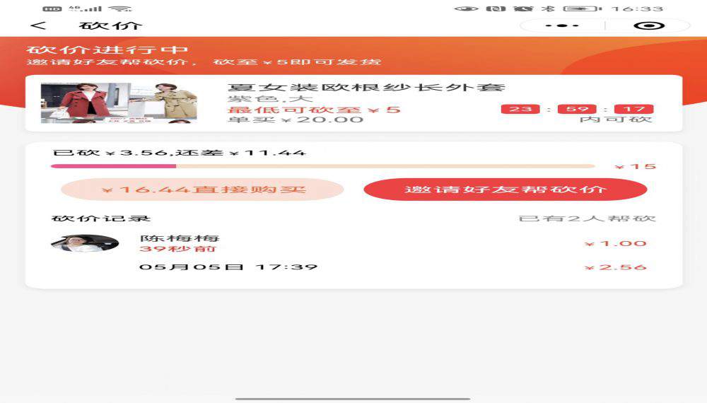砍價:通過價格刺激,獲取活動的裂變式傳播效果。